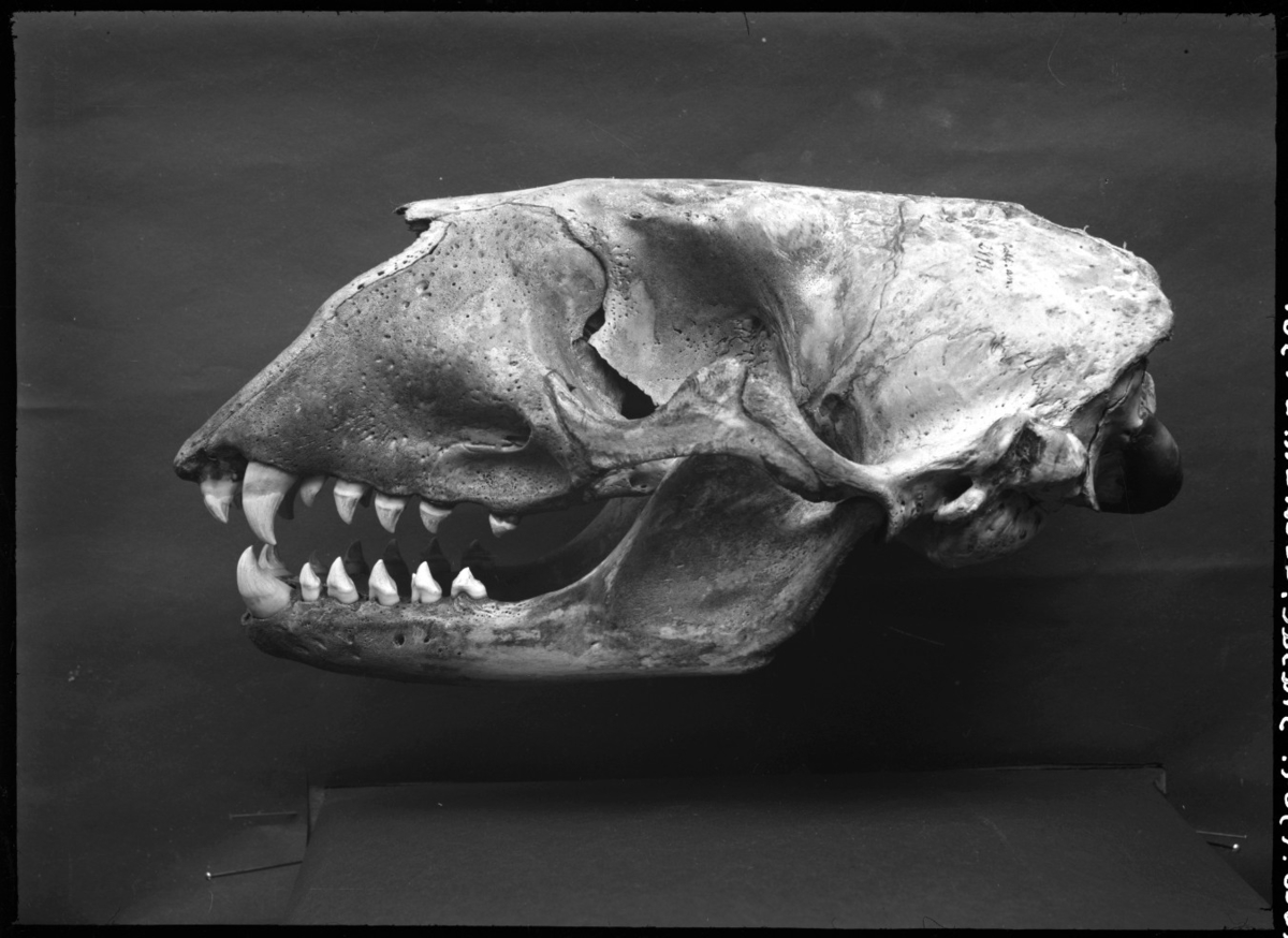 Skalle av gråsäl. Sedd från sidan