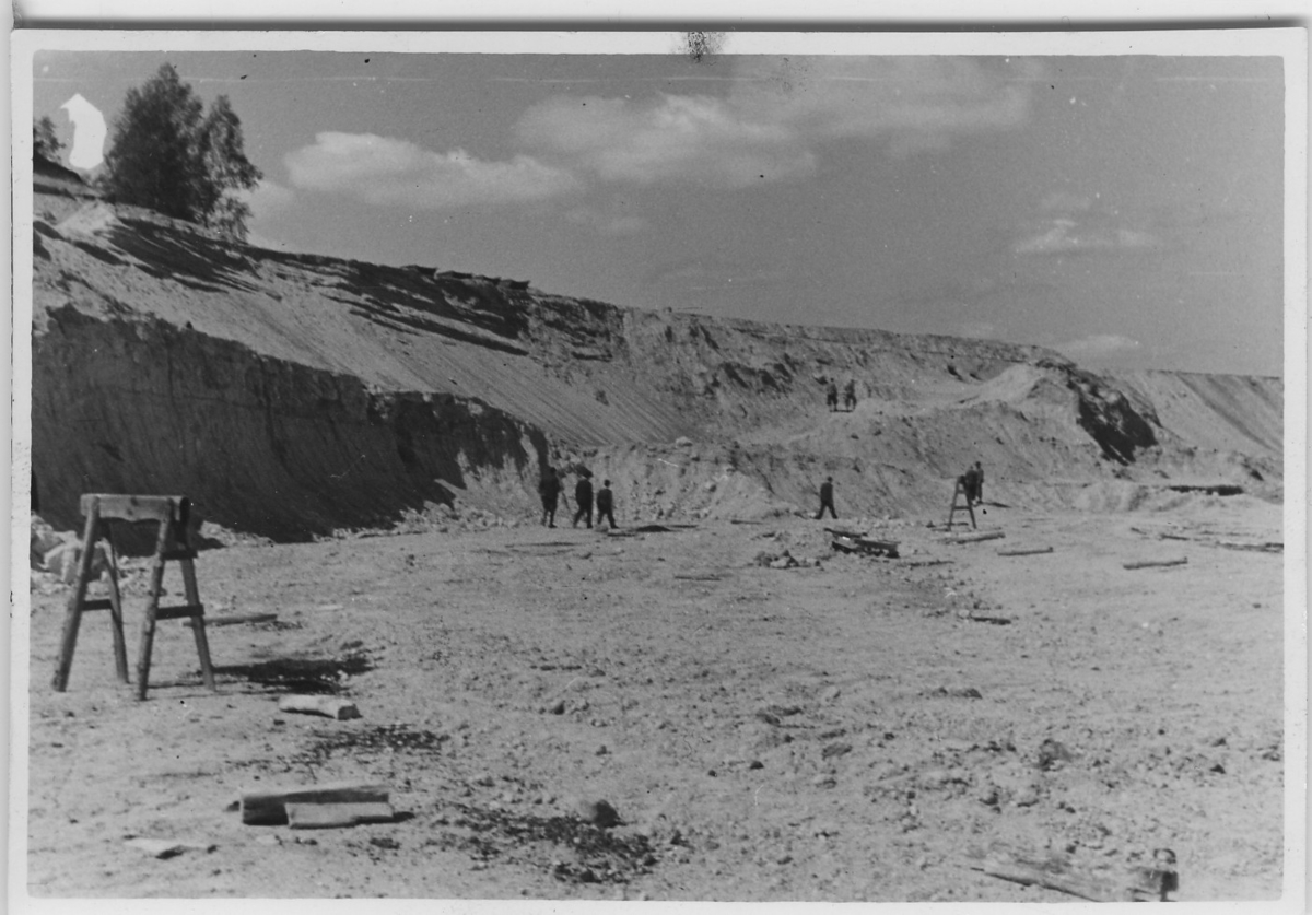 'Från Biologiska Föreningens utfärd till Ivö m. fl. platser i NÖ Skåne: :: :: Ivö klack, vy över brottet. Ca 8 personer gående i kalkbrottet. :: :: Se fotonr. 4119:1-11 och 4120:1-10 från samma utfärd. Fotonr.'