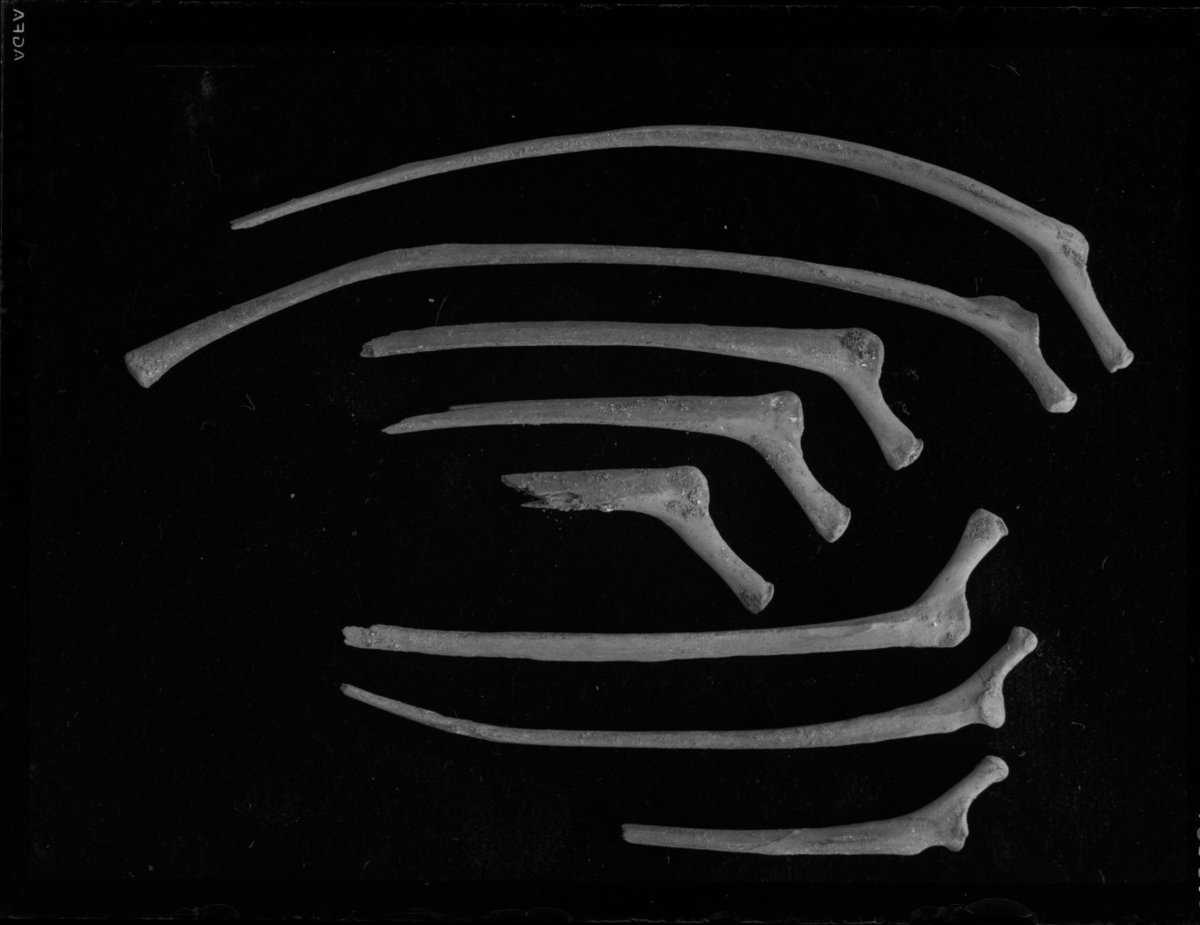 'Revben och revbenstumpar av garfågel. :: :: Se serie med fotonr. 3527-3536.'