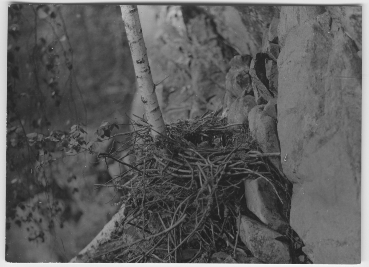 'Korpens bo invid björk vid bergvägg. :: :: Ingår i serie med fotonr. 2524-2557.'