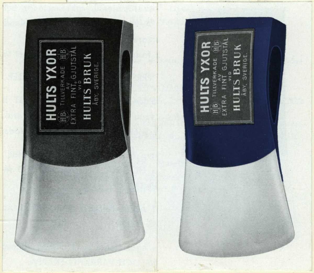 'Bildtext: ''Huggyxa, amerikansk modell.'' 2 bilder på huggyxemodeller. :: :: Fotonr. 7046:335-353 indelade som ''Skogsavverkning och virkestransport.'' Ingår i serie med fotonr. 7046:1-383, 7047:1-33 och 7048:1-67 med bilder från Länsjägmästare John Lindners bildarkiv.'