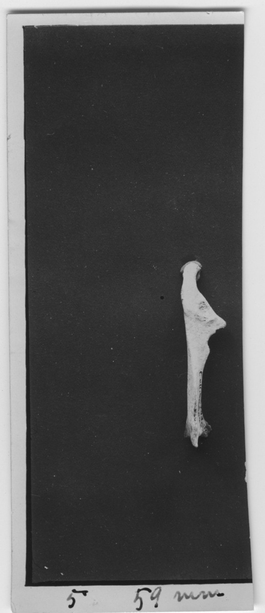 'Vänster coracoidben av garfågel. :: :: Ingår i serie med fotonr. 2984-3010, foton och teckningar på dront och garfågel bl.a.'