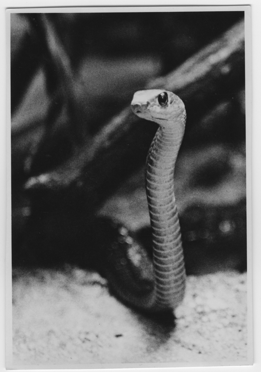 '1 råttsnok med rest huvud. Tysk text: Flinknattis zaorys. :: :: Ingår i serie med fotonr. 4501:1-60 ur ingenjör Otto Cyréns ''Ormar i fantasi och verklighet''. Bilden med på s. 189 i verket.'