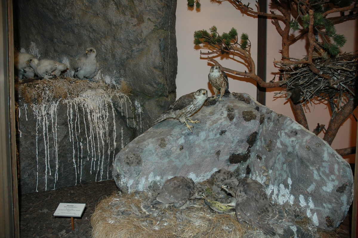 'Biologisk grupp med stenfalk, :: :: :: Till vänster ungarna i biologisk grupp med pilgrimsfalk synliga se fotonr. 7105:2 :: :: Ingår i serie med fotonr. 7105:1-8.'