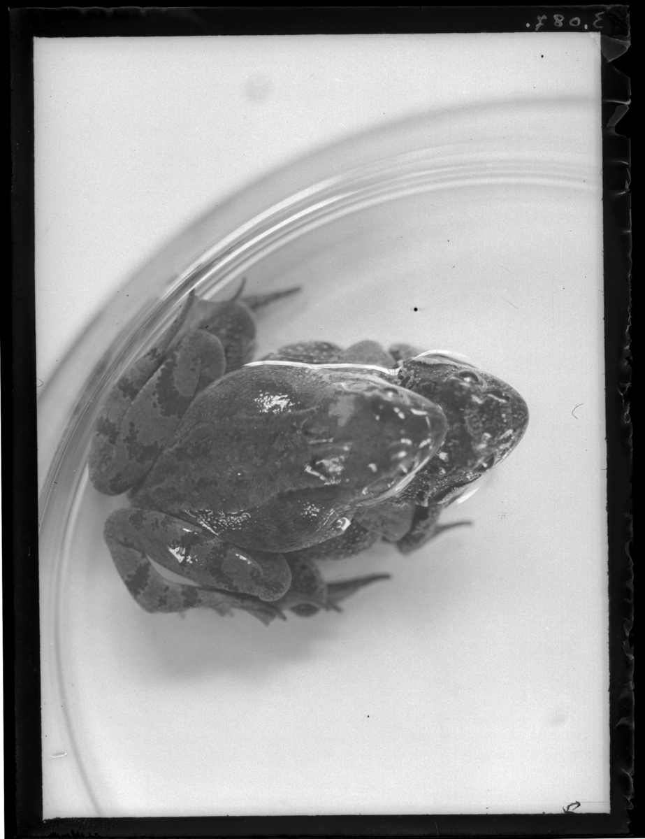 'Vanlig groda under parning i labb. Sedda ovanifrån. :: :: Se serie med fotonr. 3082-3090.'