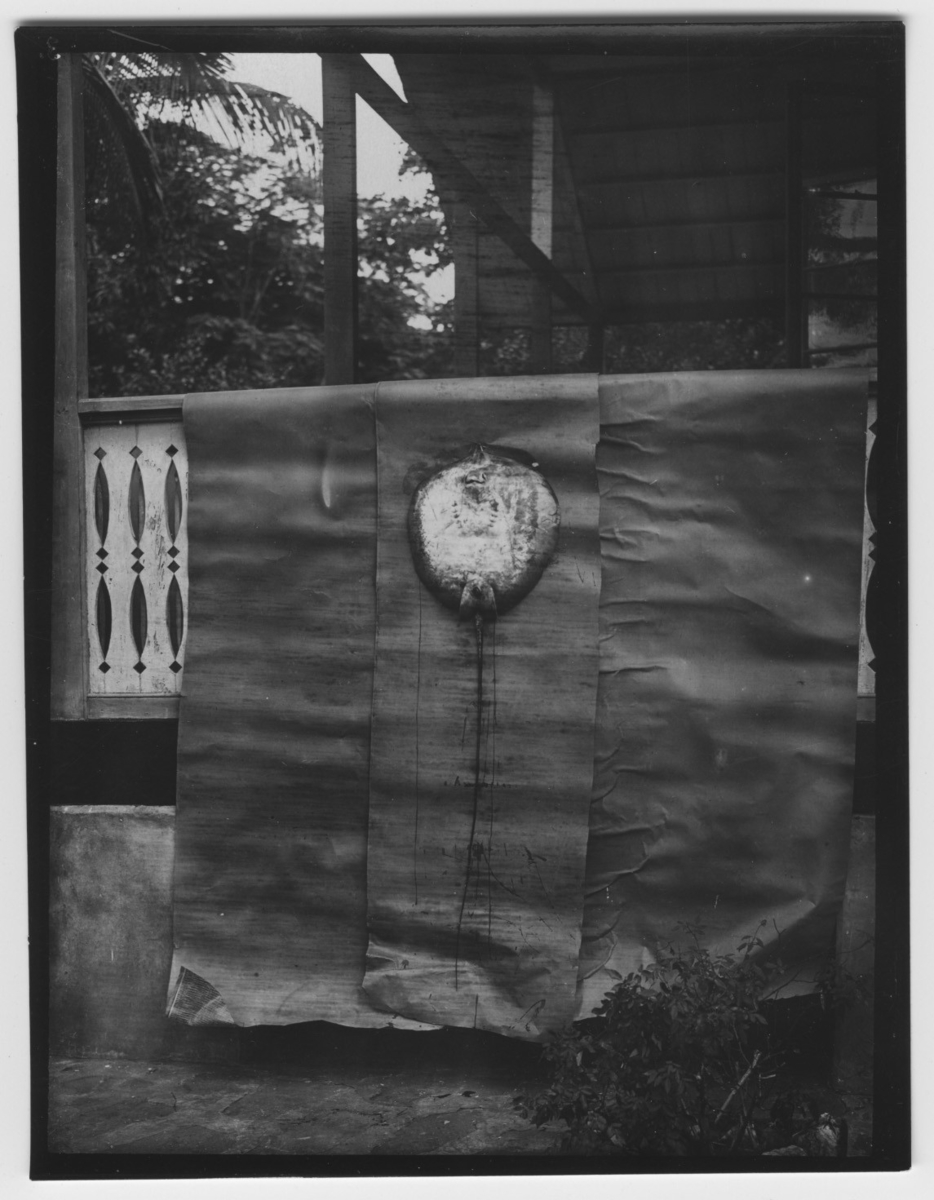 'Ryggsidan på rocka som hänger mot ett altanräcke. :: :: Ingår i serie med fotonr. 487-493.'