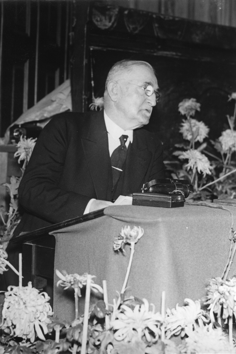 'Naturhistoriska museets 100 årsjubleum: :: :: Leonard Axel Jägerskiöld i talarstolen. :: :: Ingår i serie med fotonr. 3029-3034.'