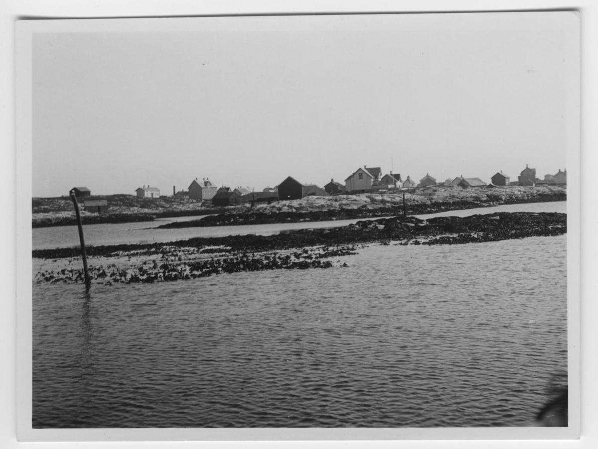 'Titran på Sör-Fröya, bebyggelse. Bilden tagen vid ebb. Bladtång sticker upp. :: :: Ingår i serie med fotonr. 3767-3775.'