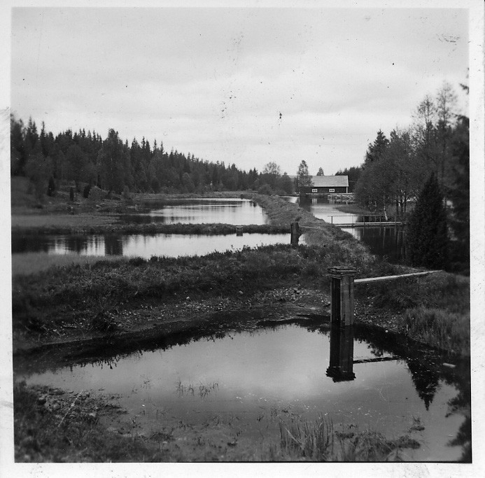 'Biologiska föreningens utfärd till Växjö, Aneboda och Misterhult: :: :: fiskodlingen i Aneboda, vy med fiskdammar. :: :: Se fotonr. 3902-3908, 3909-3923 och 3924-3933 från samma utfärd.'