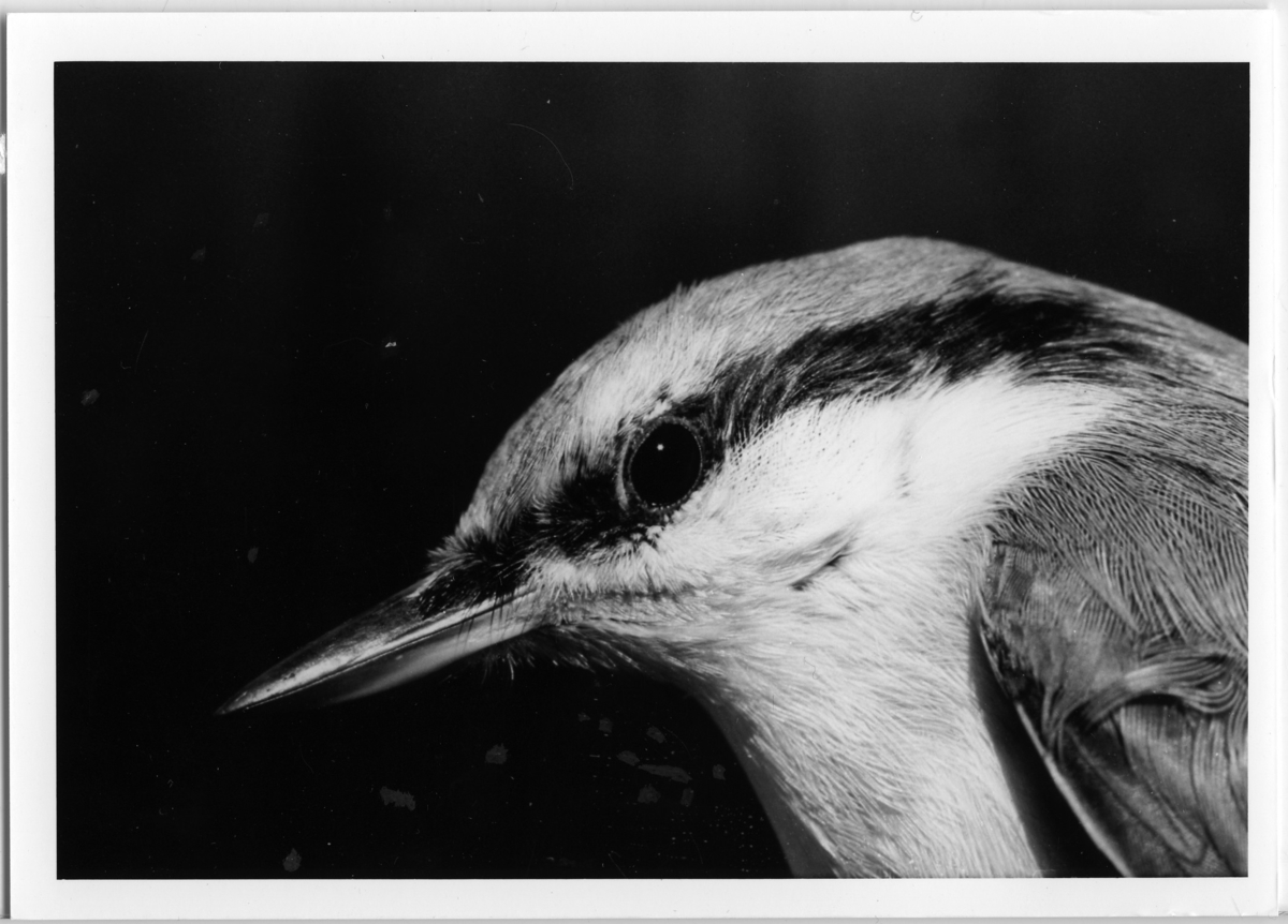 'Bilder från Projekt Ekekullen, Slottsskogen. Närbild på huvud av nötväcka. :: Ingår i serie med fotonr. 6764:10-21. :: :: Ingår i serie med fotonr. 6764:1-39.'