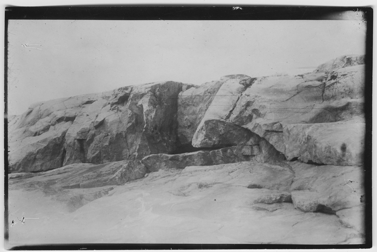 'Enligt bildtext: ''Lunneskrevan, från öster, på Stora Knappen''. Vy med berghäll. :: :: Se serie med fotonr. 468-475.'