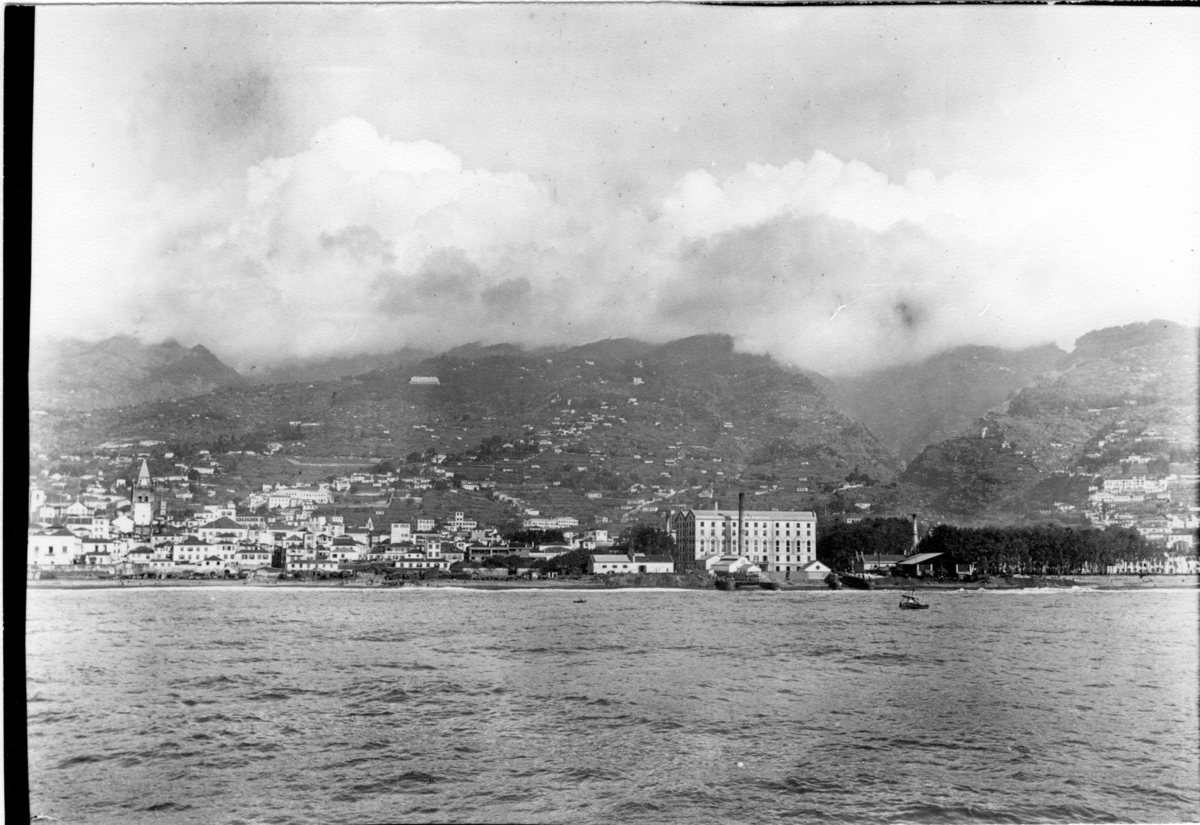 'Diverse fotografier från bl.a. dåvarande Nordrhodesia, nu Zambia, tagna av Konsul Magnus Leijer. :: :: Vy, tagen från vatten, över en stad liggande på land framför berg.'