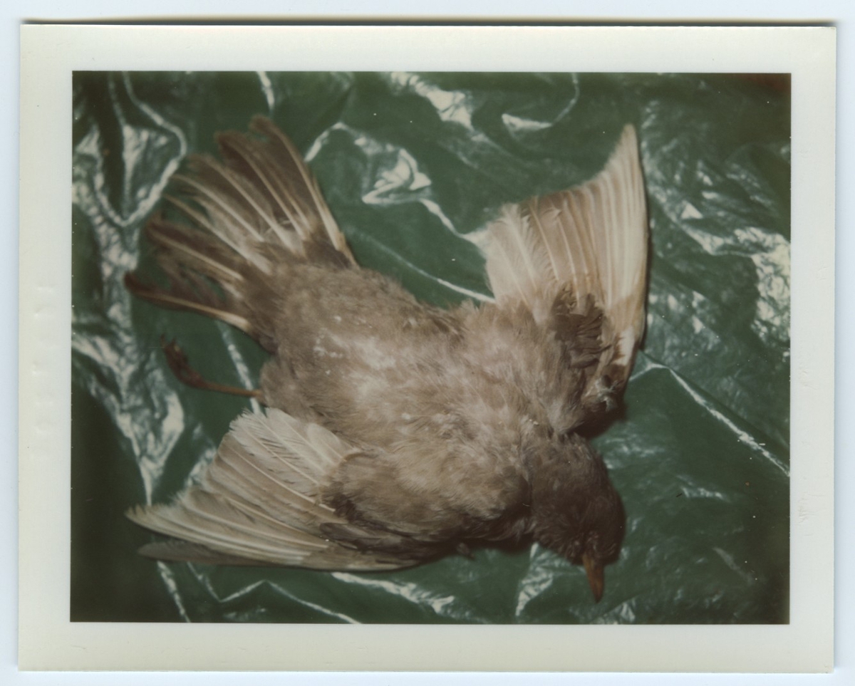 Partiellt albinistisk koltrast fotograferad död liggande på plast. Fynddatum: 1971-05-02.