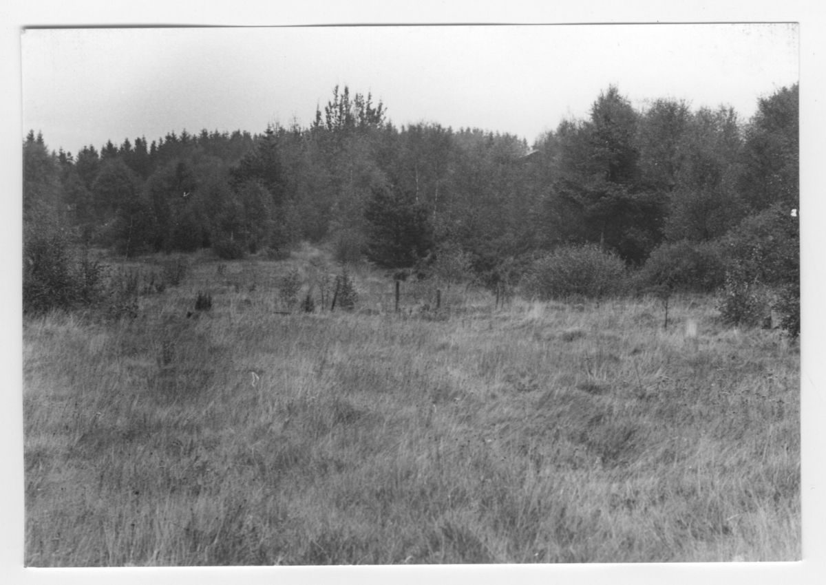 'Bildtext: ''Kärr. Riktning 34.'' I förgrunden kärr, satket och på avstånd löv- och barrträdsvegetation med bl.a. tall, björk. :: :: Ingår i serie med fotonr. 6970:1-1125, dokumentation av Hisingens naturgeografi, visande landskapsformerna i stora drag och gjord inför exploateringen av området. Platserna för fotograferingen finns utsatta på karta i skala 1:4000 som finns på Göteborgs Naturhistoriska musem. Fotoriktningen mättes med kompass i gammalgrader.'