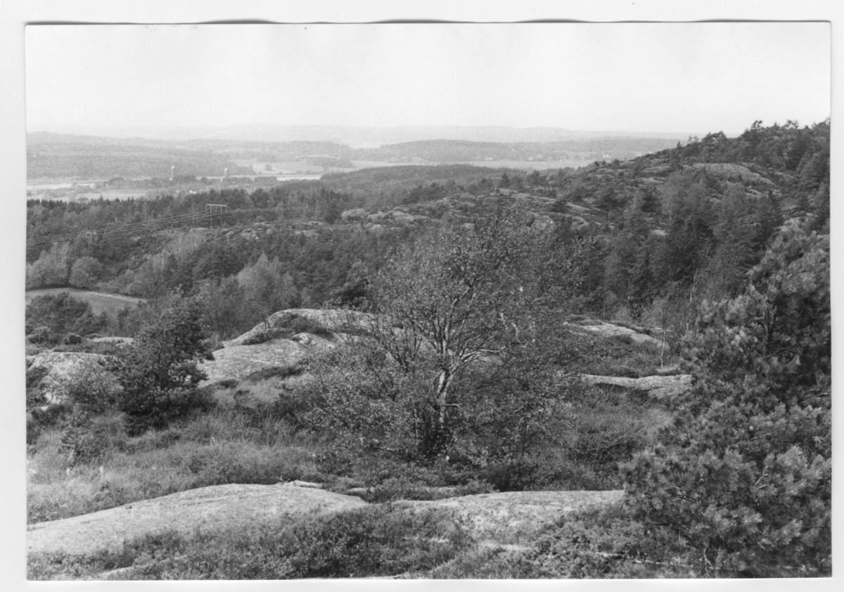 'Bildtext: ''Hällandskap. Riktning 316.'' :: :: Ingår i serie med fotonr. 6970:1-1125, dokumentation av Hisingens naturgeografi, visande landskapsformerna i stora drag och gjord inför exploateringen av området. Platserna för fotograferingen finns utsatta på karta i skala 1:4000 som finns på Göteborgs Naturhistoriska musem. Fotoriktningen mättes med kompass i gammalgrader.'