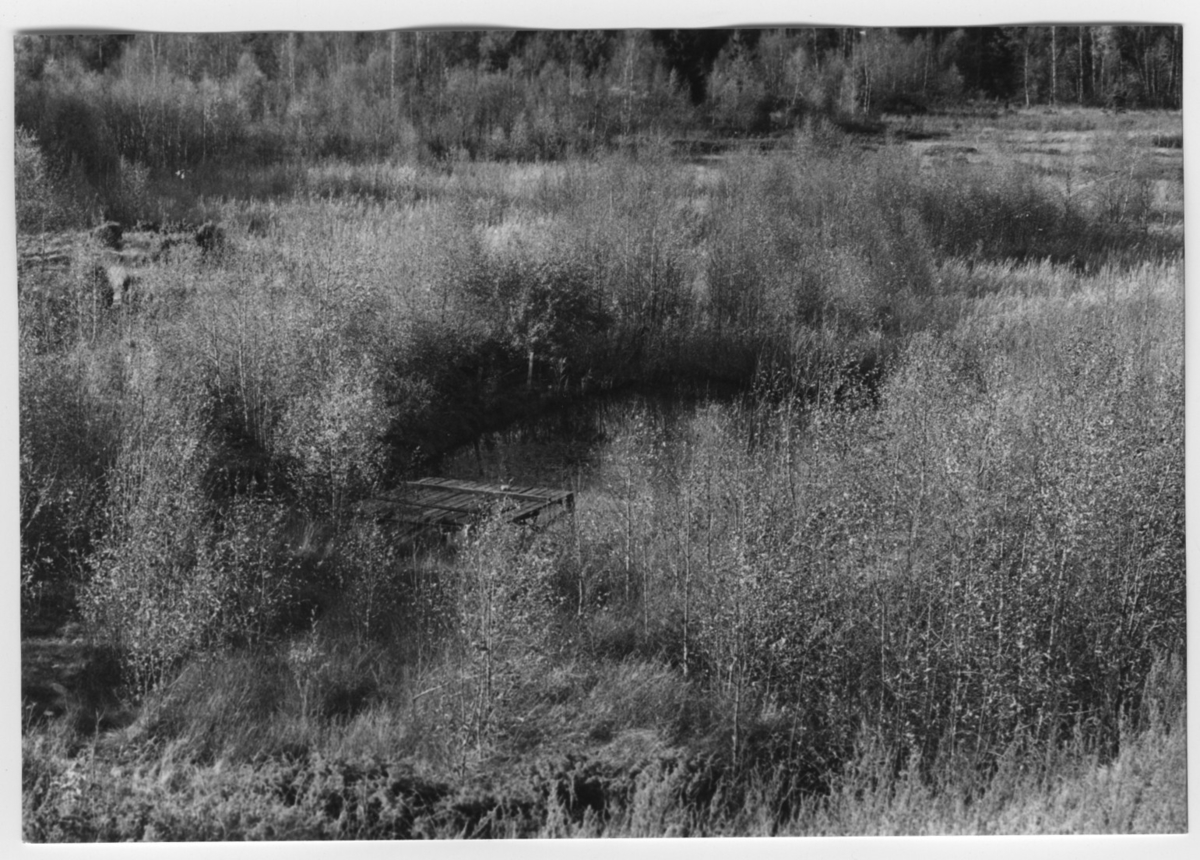 'Bildtext: ''Källa vid sida av isälvsås. Riktning 339.'' :: :: Ingår i serie med fotonr. 6970:1-1125, dokumentation av Hisingens naturgeografi, visande landskapsformerna i stora drag och gjord inför exploateringen av området. Platserna för fotograferingen finns utsatta på karta i skala 1:4000 som finns på Göteborgs Naturhistoriska musem. Fotoriktningen mättes med kompass i gammalgrader.'