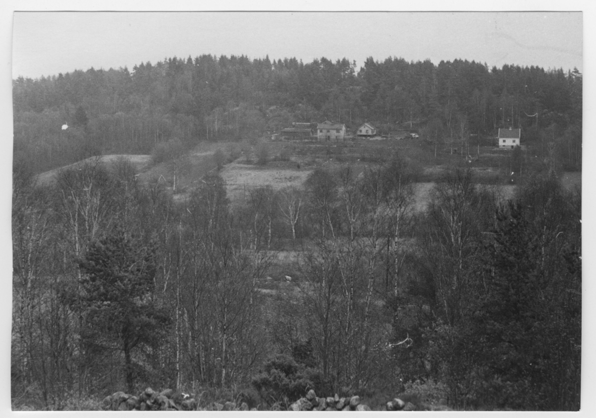 'Bildtext: ''Sedimentdal. Riktning 128.'' :: :: Ingår i serie med fotonr. 6970:1-1125, dokumentation av Hisingens naturgeografi, visande landskapsformerna i stora drag och gjord inför exploateringen av området. Platserna för fotograferingen finns utsatta på karta i skala 1:4000 som finns på Göteborgs Naturhistoriska musem. Fotoriktningen mättes med kompass i gammalgrader.'