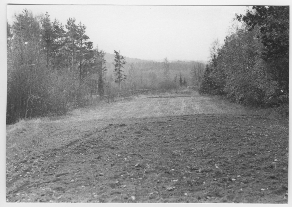 'Bildtext: ''Åker i sänka mellan hällpartier. Riktning 196.'' :: :: Ingår i serie med fotonr. 6970:1-1125, dokumentation av Hisingens naturgeografi, visande landskapsformerna i stora drag och gjord inför exploateringen av området. Platserna för fotograferingen finns utsatta på karta i skala 1:4000 som finns på Göteborgs Naturhistoriska musem. Fotoriktningen mättes med kompass i gammalgrader.'