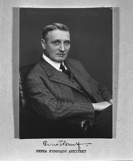 ' :: Repro av sex porträtt av samt äldre Göteborgskarta. :: :: Porträtt av Ernst Torulf enligt bildtext: ''Denna Byggnads Arkitekt''. (Göteborgs Naturhistoriska Museum).'