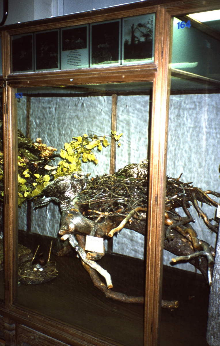 'Montrarna i fågelgången fotograferade före restaurering. :: Svenska fåglar. Biologiska grupp. Rovfåglar. :: :: Ingår i serie med fotonr. 6939:1-54.'