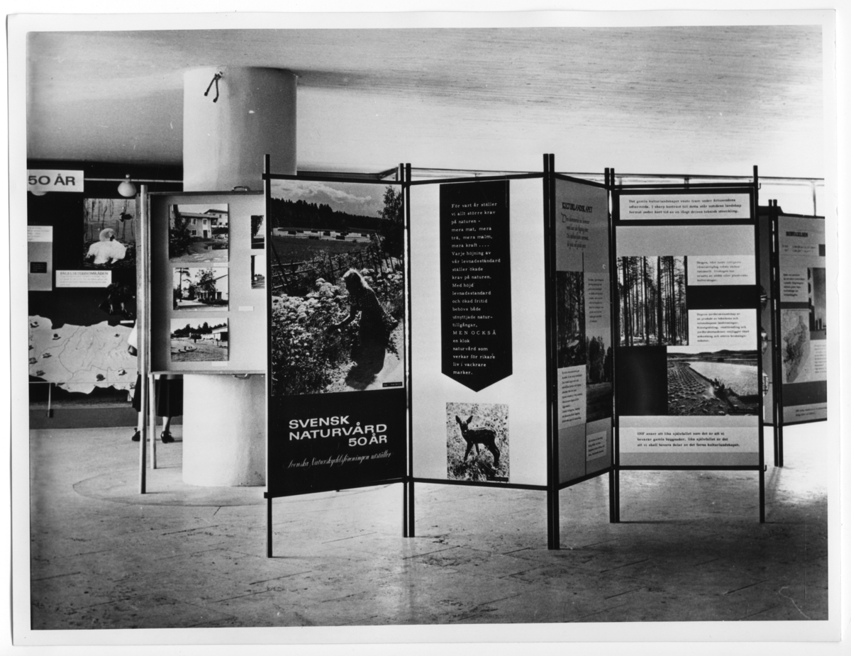 'Utställningsskärmar i utställningen ''Svensk Naturvård 50 år''. :: :: Ingår i serie med fotonr. 7013:1-4 med foton från Naturskyddsföreningens 50-årsutställning år 1959.'