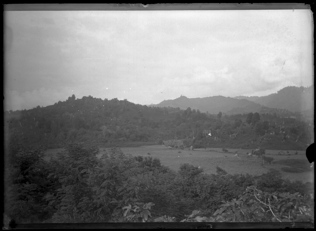 'Vy över bergparti med öppna fält i en dal. :: :: Ingår i serie med fotonr. 5284:1-19. Se även fotonr. 5269-5292 med bilder från Stuxbergs resa till Kaukasien.'