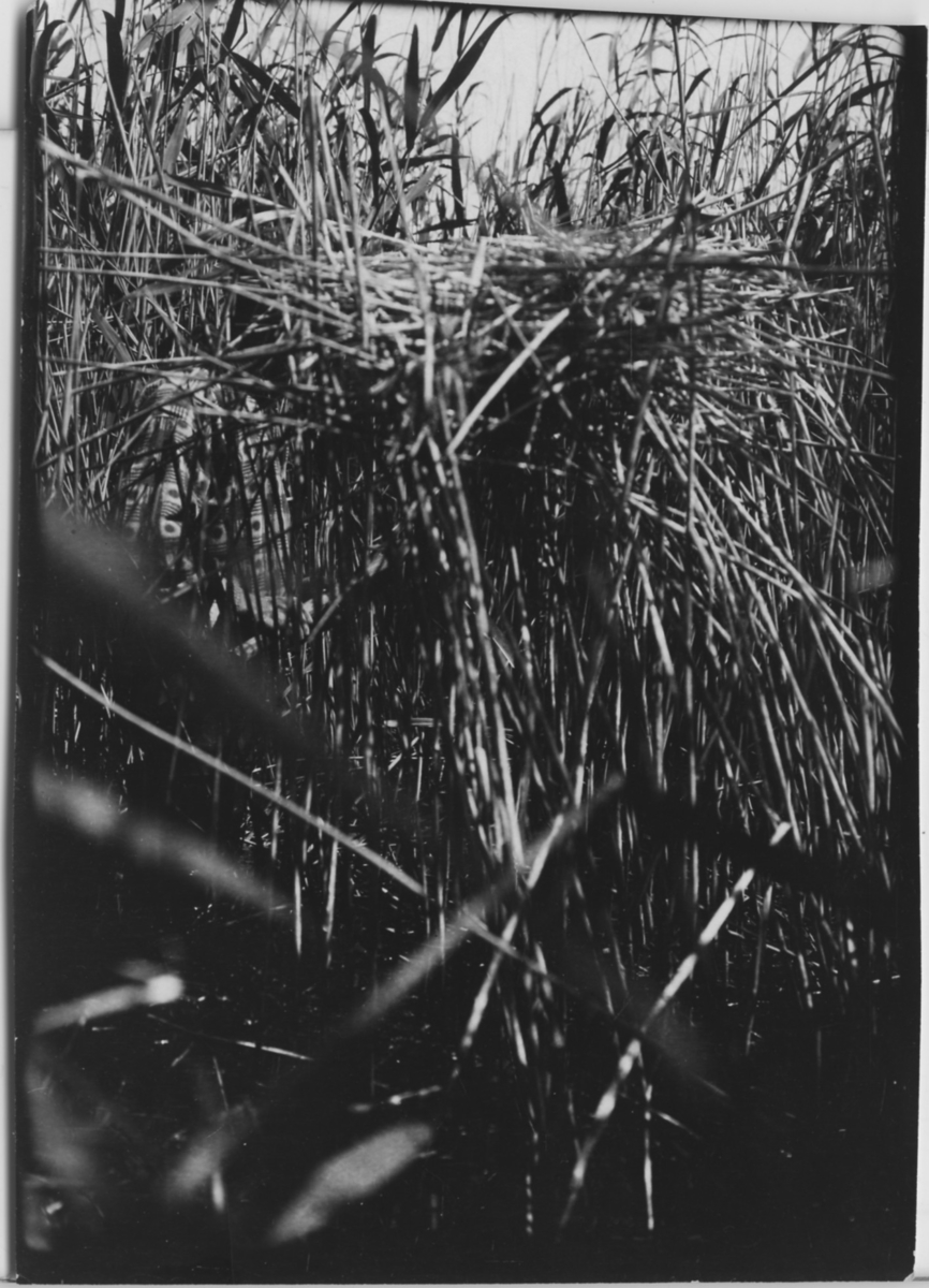 'Bo av ägretthäger. 1 person står bakom boet, boet i huvudhöjd på denne. :: :: Se fotonr. 159-166.'