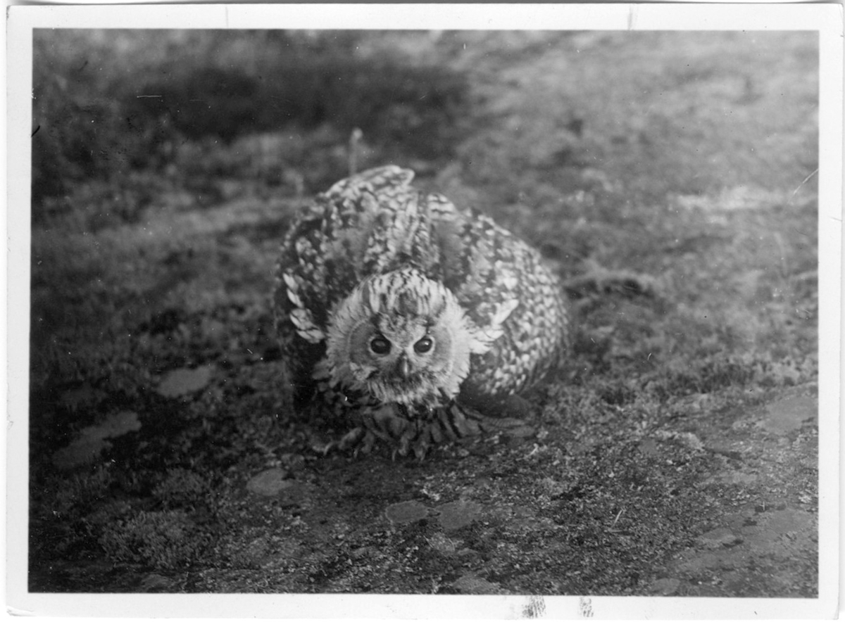 'Berguv i I försvarsställning, närbild. På berghäll. :: :: Ingår i serie med fotonr. 1771-1837. Se även fotonr. 3151-3200.'