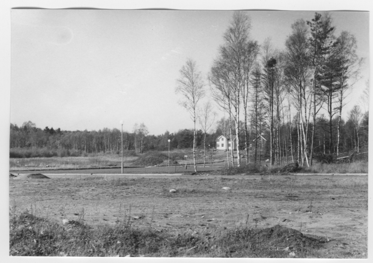 'Bildtext: ''Björkskog på sand. Riktning 274.'' :: Vy med hus på avstånd och dunge med björkar, öppna fält, åkermark och skogsområde samt väg. :: :: Ingår i serie med fotonr. 6970:1-1125, dokumentation av Hisingens naturgeografi, visande landskapsformerna i stora drag och gjord inför exploateringen av området. Platserna för fotograferingen finns utsatta på karta i skala 1:4000 som finns på Göteborgs Naturhistoriska musem. Fotoriktningen mättes med kompass i gammalgrader.'