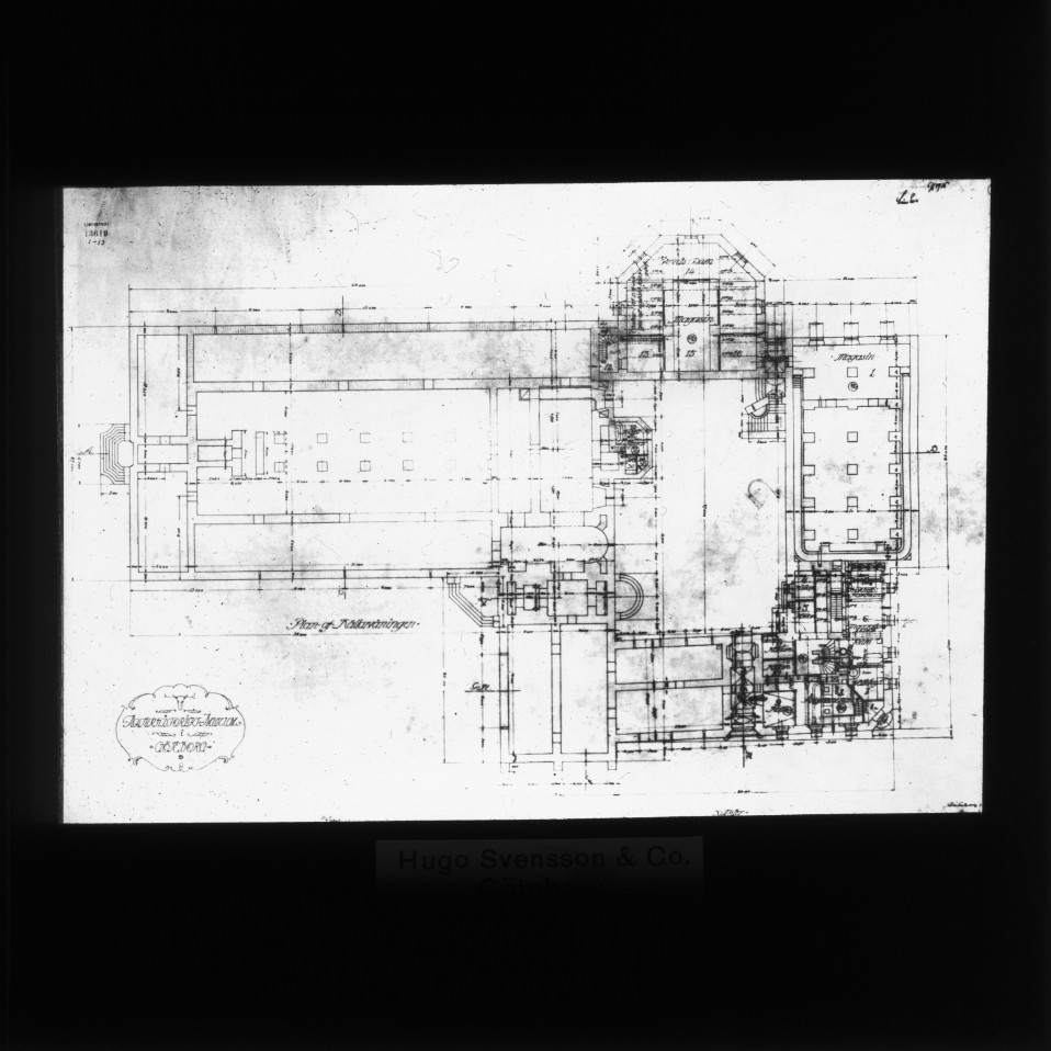 'Byggnader. :: ''Svenska museer'' :: Diaduplikat av bilder i fotoarkivet. :: :: Ritning av ett av våningsplanen i Göteborgs Naturhistoriska museums byggnad i Slottsskogen: ''Plan af Källarvåningen''.'