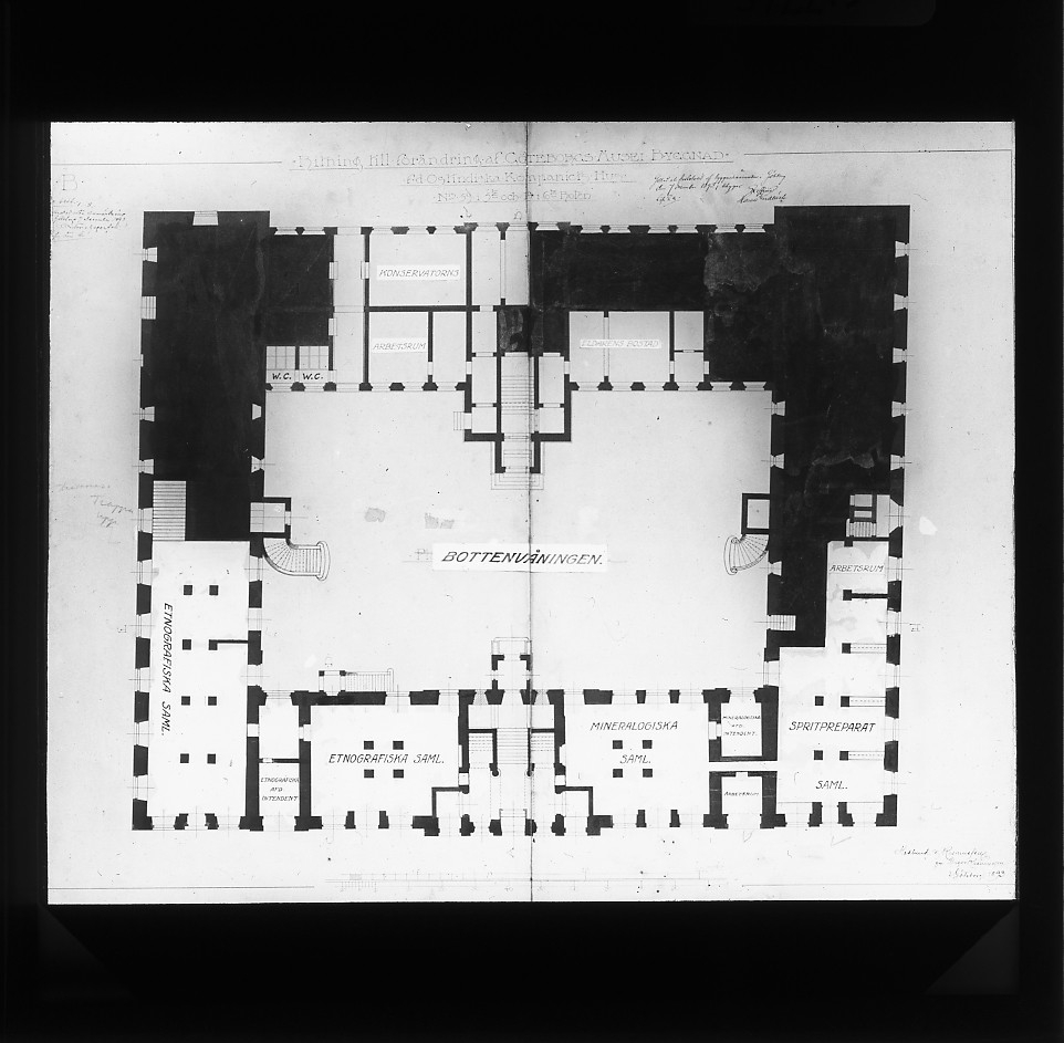 'Avfotograferade ritningar till Gamla museet. :: :: ''Bottenvåningen'''