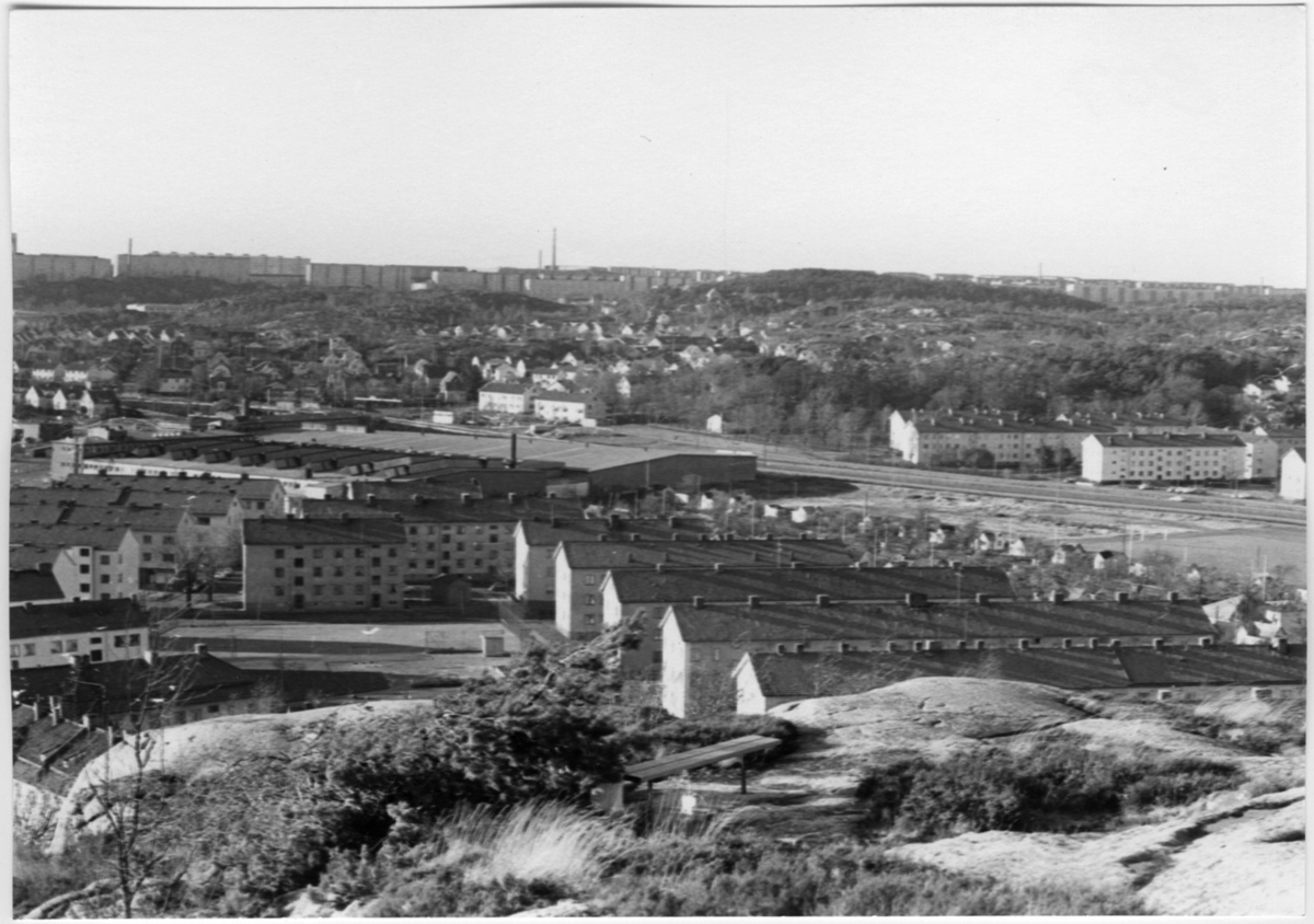 'Bildtext: ''Vy från Ramberget. Riktning 295.'' :: :: Ingår i serie med fotonr. 6970:1-1125, dokumentation av Hisingens naturgeografi, visande landskapsformerna i stora drag och gjord inför exploateringen av området. Platserna för fotograferingen finns utsatta på karta i skala 1:4000 som finns på Göteborgs Naturhistoriska musem. Fotoriktningen mättes med kompass i gammalgrader.'