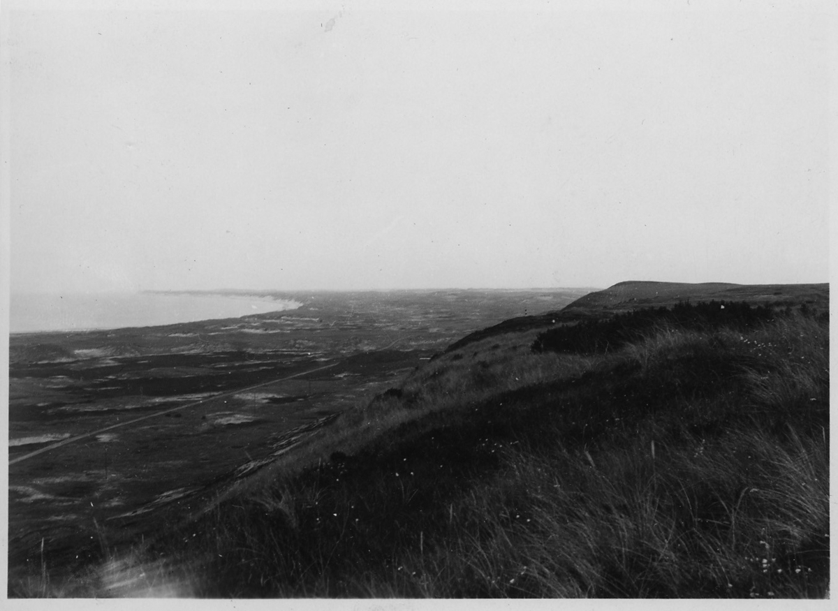 'Akka-expeditionen sommaren 1930: :: :: Utsikt österut från Nordbjerg. Vy med hav. :: :: Ingår i serie med fotonr. 2033-2087.'