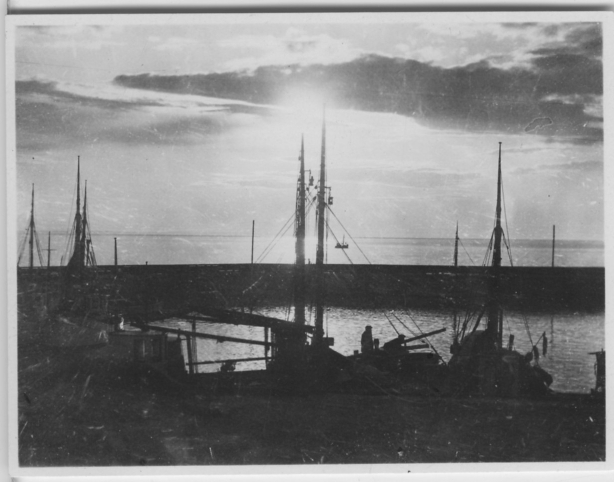 'Biologiska föreningens utfärd till Läsö och Nordre Rönner: :: :: ''Solnedgång i Vesterö hamn, Läsö''. Vy över hamn med båtar, ut mot havet. Båt till havs. :: :: Se fotonr. 2674-2734, 2687-2691, 2692-2711, 2714-2734, 2843-2863 och 2975 från samma utfärd.'