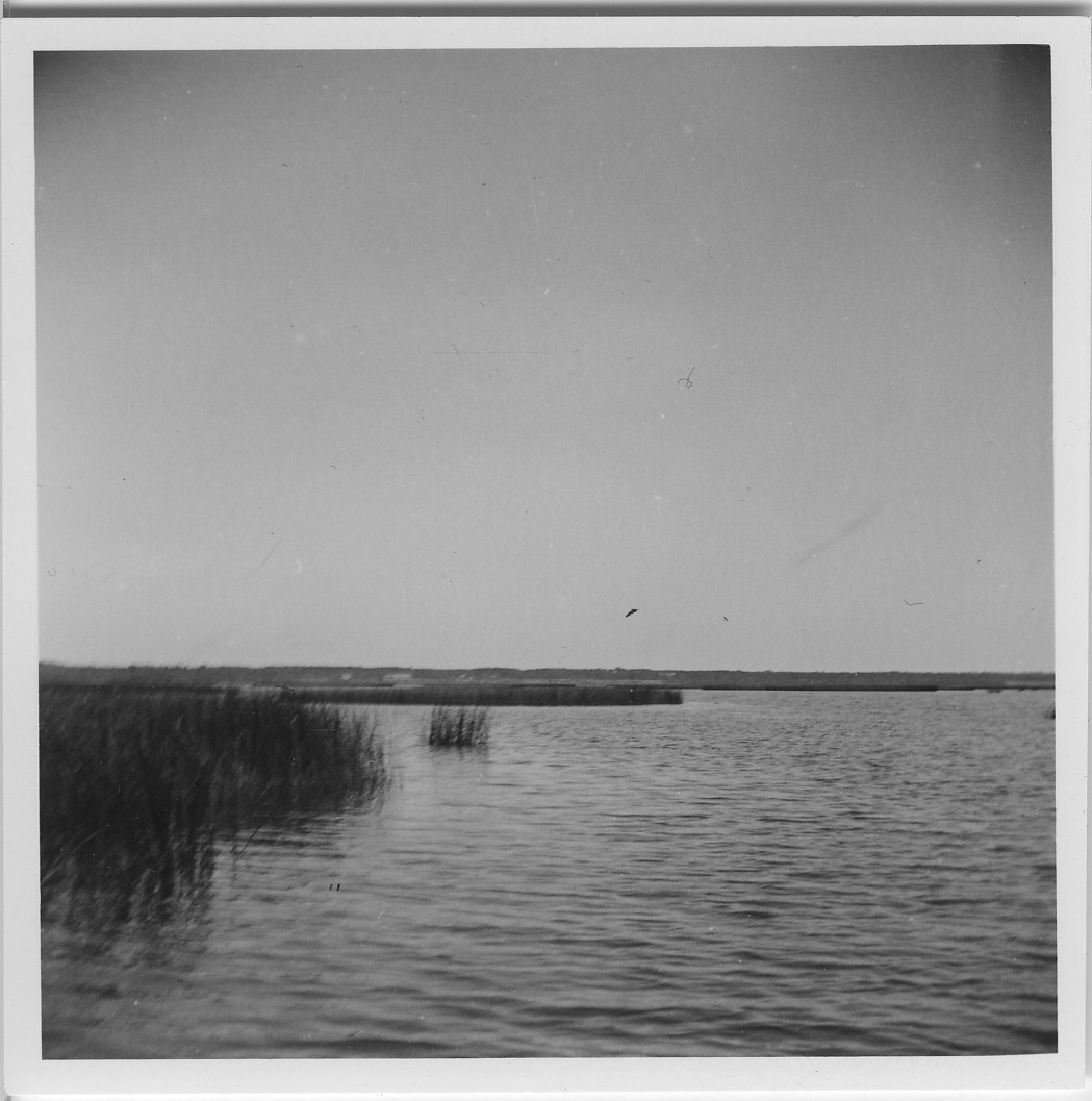 'Ingår serie 4385:1-27 från Biologiska föreningens utfärd till sjön Östen och Kinnekulle. :: :: Vy över sjön Östen med vassruggar.'