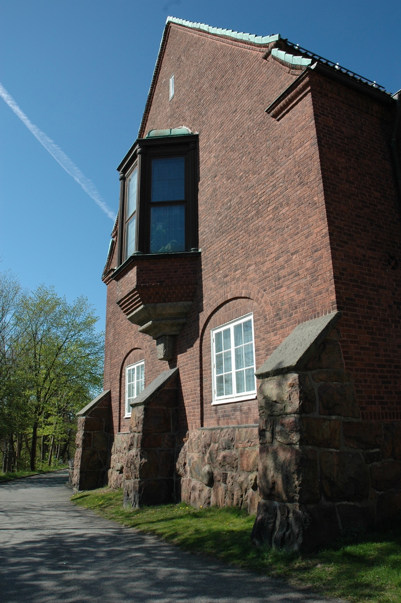 'Östra gaveln av Naturhistoriska museet, sett från gångvägen upp från Linneplatsen. :: :: Ingår i serie med fotonr. 6988:1-15.'