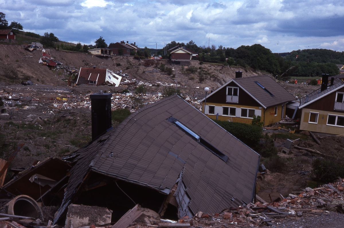 'Bildtext: ''Tuveskredet vy mot nordöst och Svereberget.'' cylinderskred, rotationsskred, skålskred :: :: :: Ingår i serie med fotonr. 7033:1-168 med bilder från Tuveskredet som skedde 30 november 1977