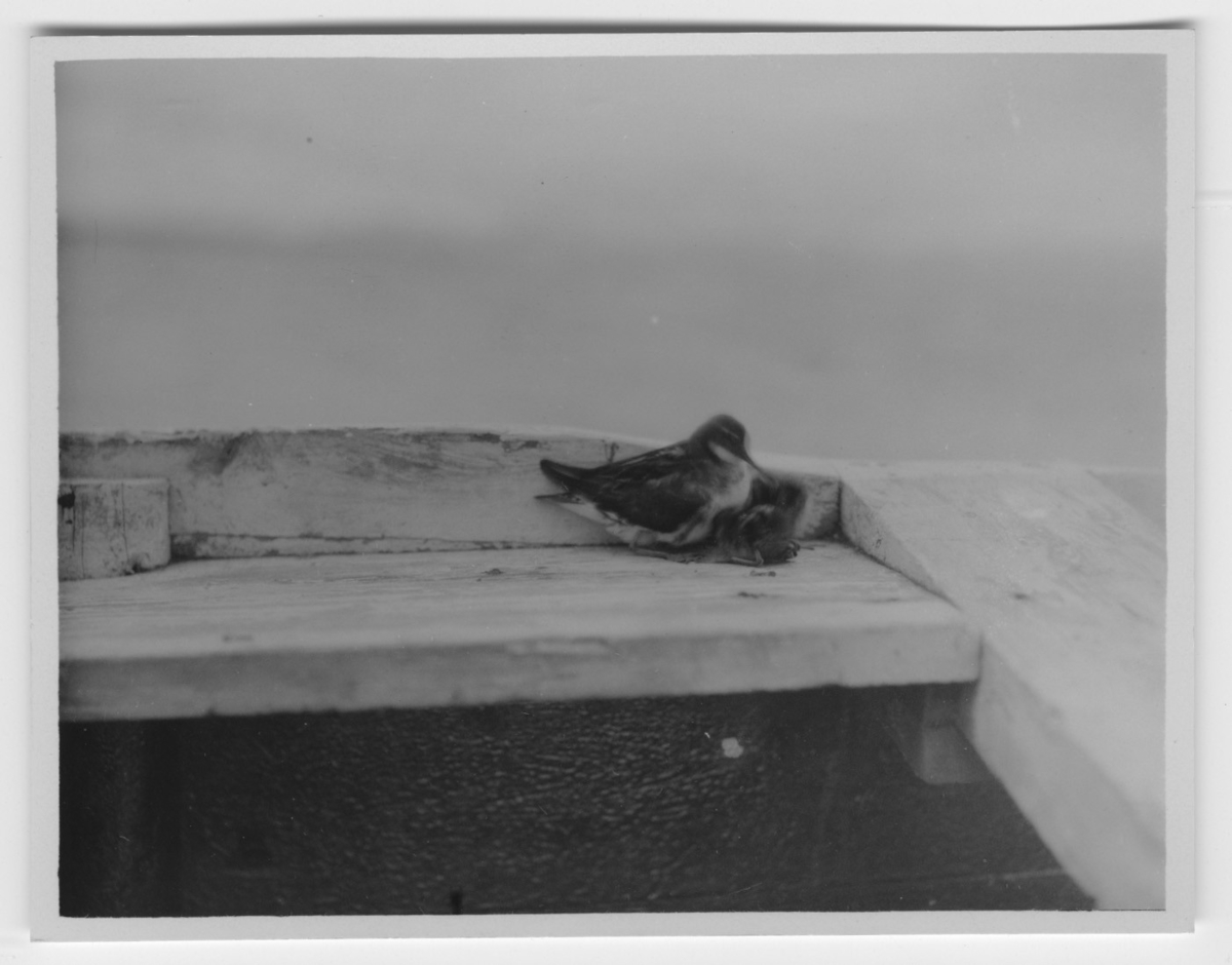 'Smalnäbbad simsnäppa med ungar, i båt? :: :: Ingår i serie med fotonr. 2116- 2160.'