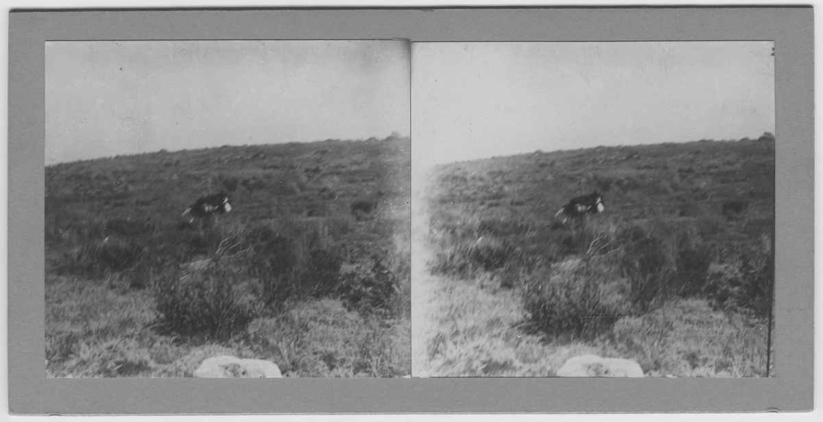 'Strutsfågel, (oskarp) på avstånd. :: :: Ingår i serie med fotonr.167-179, 181-184, 186-191, 193-196, 198-203 samt 205-215 med foton från Hilmer Skoogs expedition till Sydafrika år 1912-1913.'
