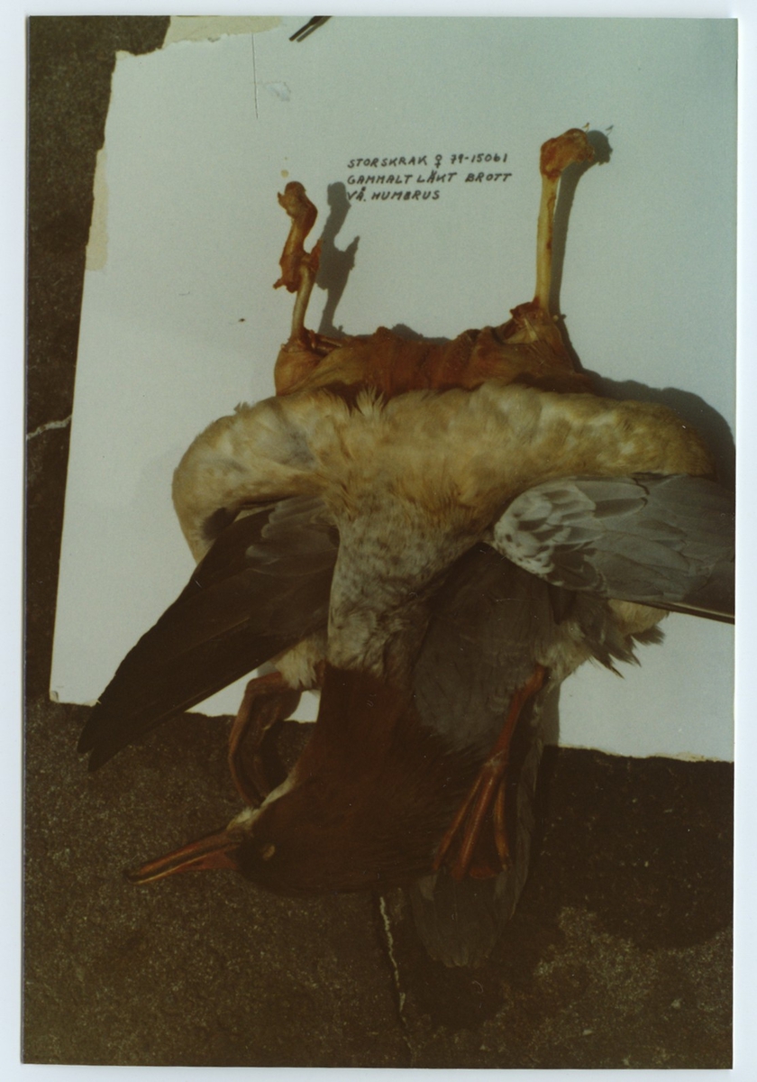 'Närbild på den döda storskraken. Gammalt läkt brott på vänster humerus. :: :: Ingår i serir med fotonr. 5635:1-3.'