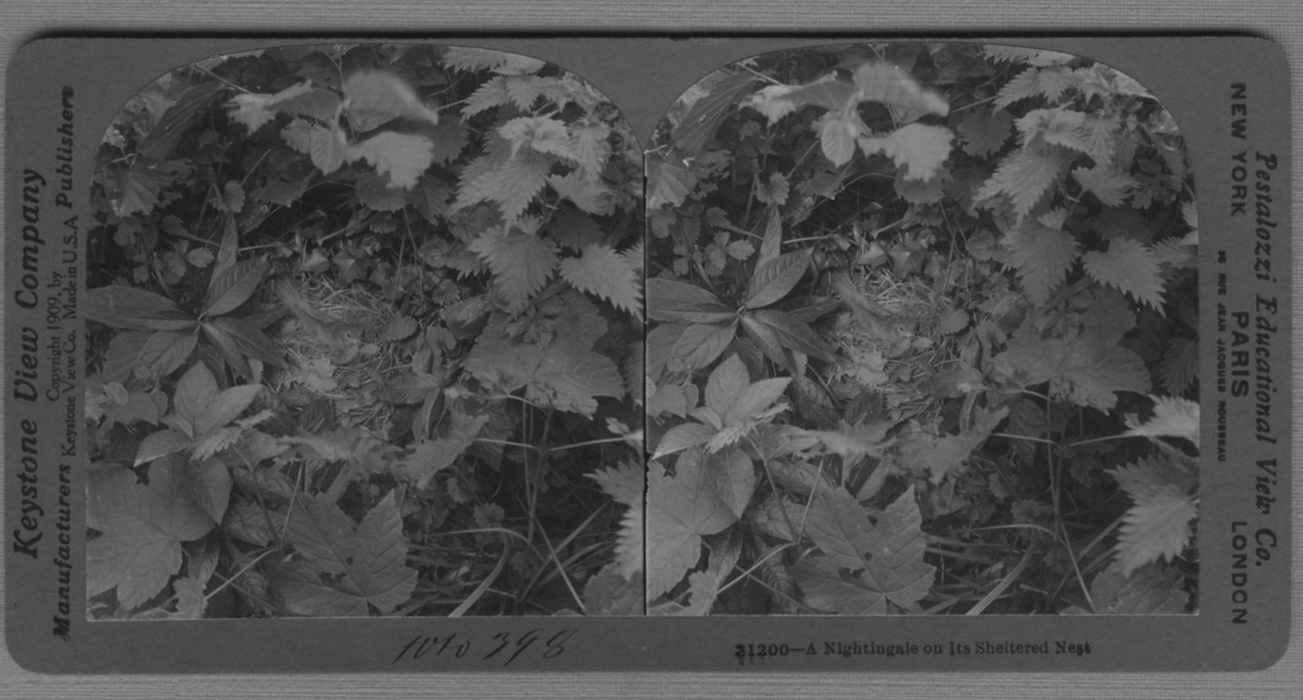 'Näktergal i sitt skyddade bo. :: :: ''21200 - A Nightingale on its Sheltered nest.'' :: :: Ingår i serie med fotonr. 315-422.'