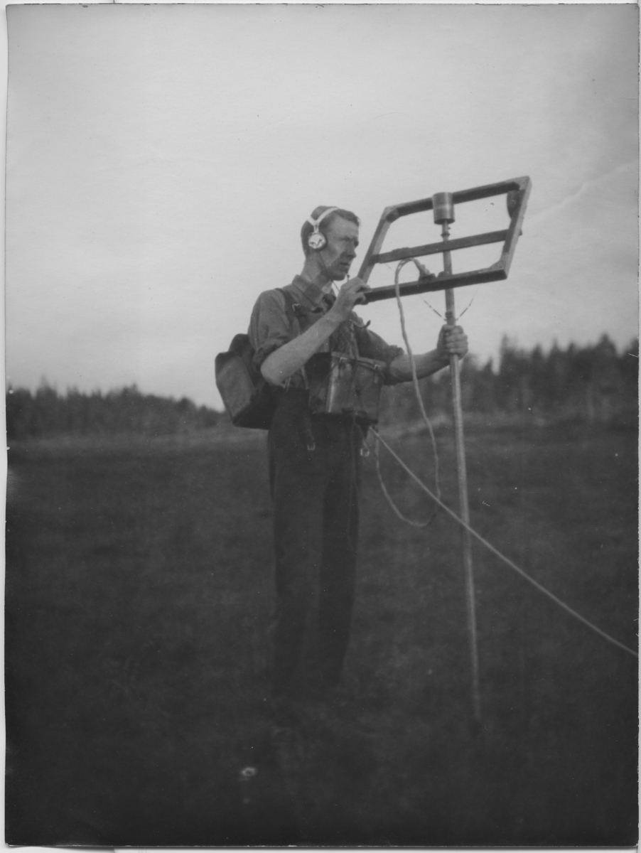 'Bolidens gruva, :: man med malmletningsinstrument, :: Samma som 4958 fast spegelvänd. :: ''bedömning av malmens läge'' :: :: Serie fotonr 4931-4967.'