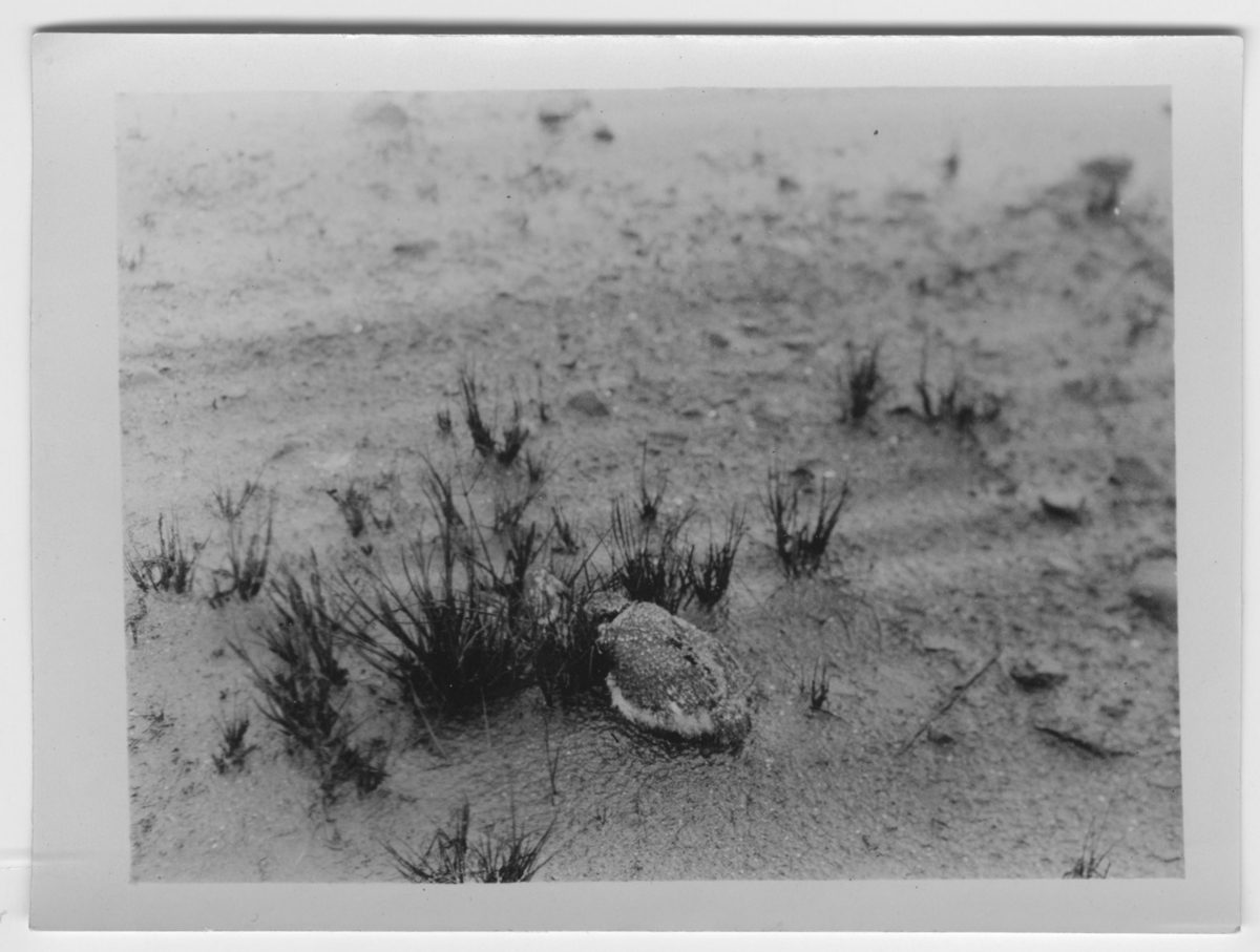 'Tofsvipeunge på marken. Text på baksidan: ''En vipunge ''döljande'' sig med huvudet i en tuva.'' :: :: Ingår i serie med fotonr. 4102-4109.'