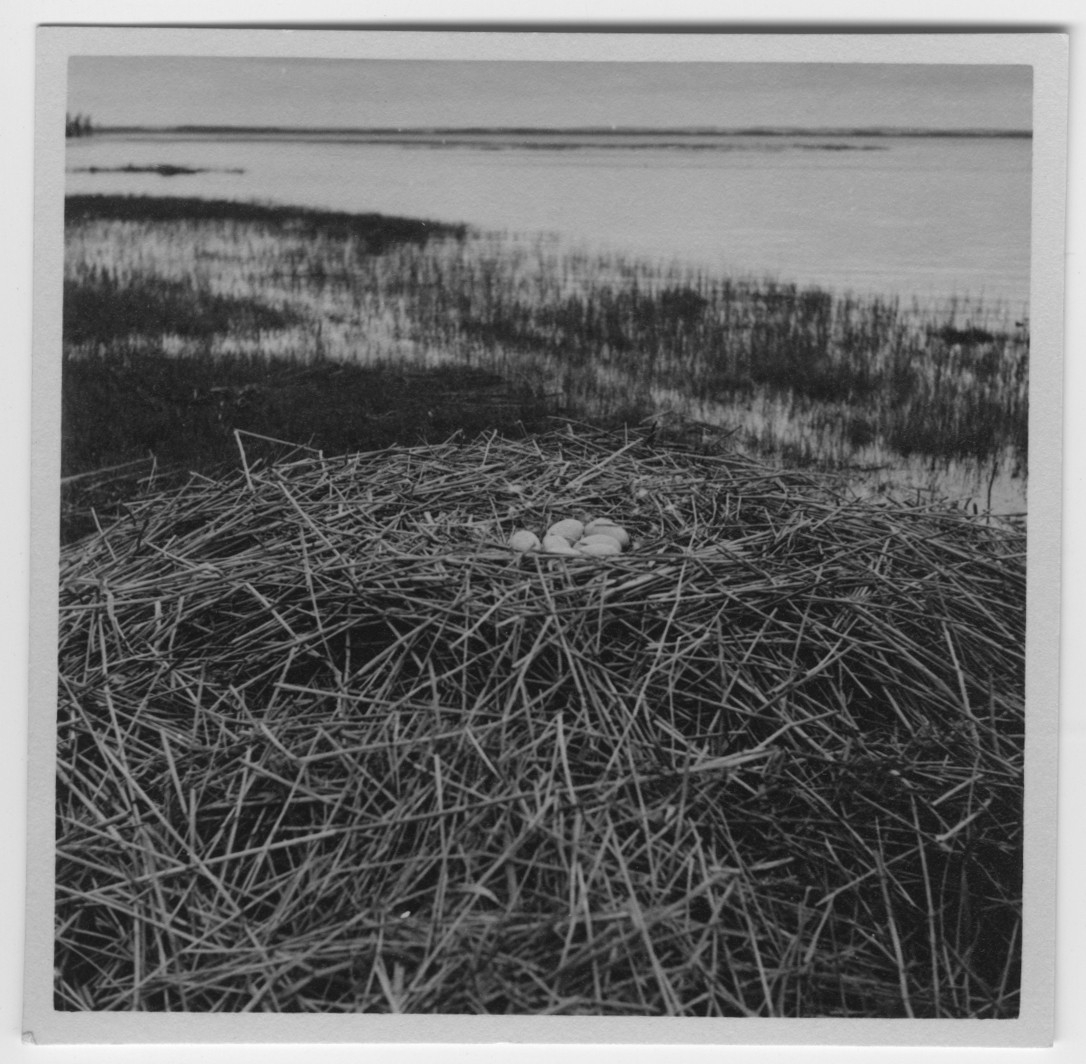 'Göteborgs Biologiska förenings utfärd till Tåkern: :: :: Svanbo på i förgrunden. Vy med sjökant och sjön i bakgrunden. :: :: Se fotonr. 3574-3577.'