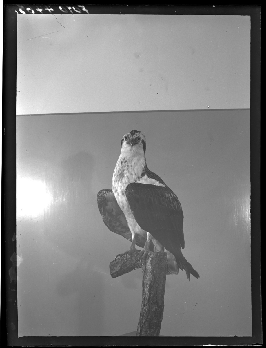 'Fiskgjuse, hane. Fynddatum: 1926-04-23. :: :: Montaget finns utställt i monterskåp nr. 230 i fågelgången på Göteborgs Naturhistoriska Museum (2008-02-11).'