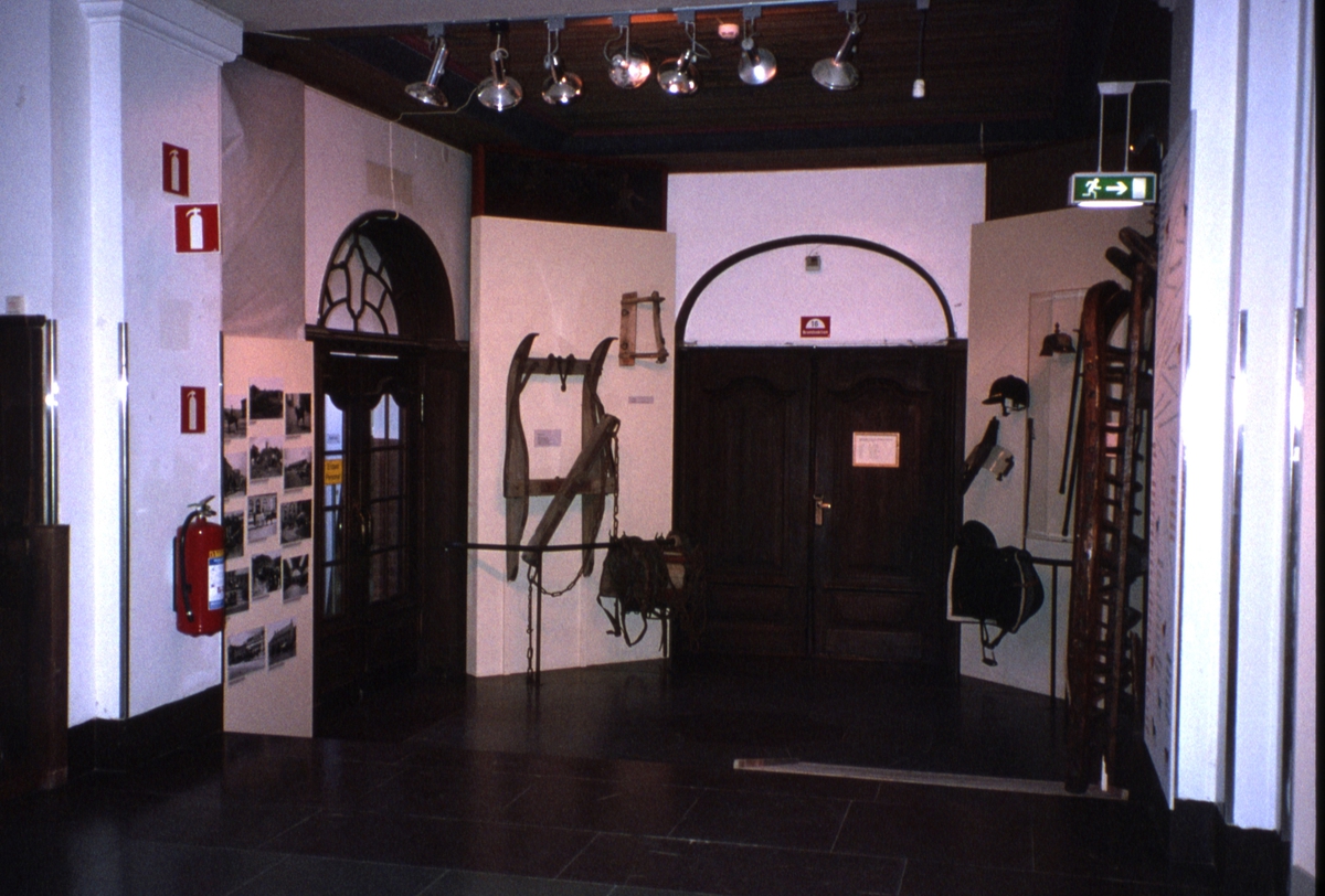 'Utställningen ''Något i hästväg'' på Göteborgs Naturhistoriska museum, pågick 11 september 2004 t. o. m. 9 januari 2005. :: :: Utställda föremål som har med hästar och ridning att göra t.ex. Sadlar och hjälmar. Även foton på en utställningsskärm. :: :: Ingår i serie med fotonr. 6947:1-8.'