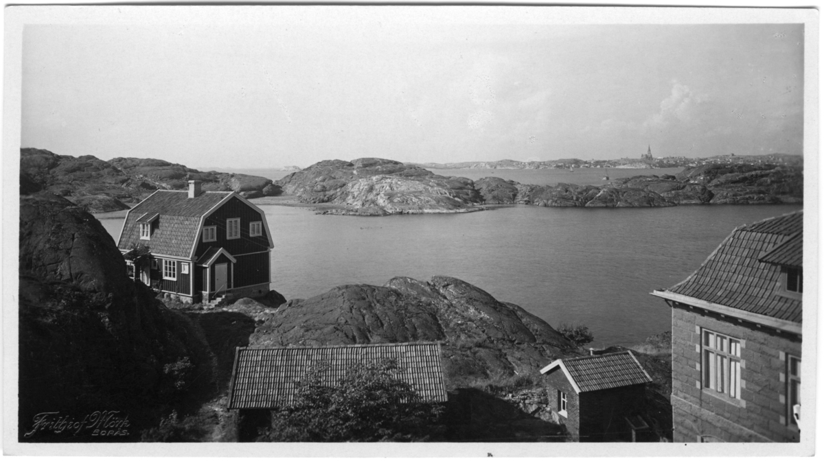 'Kristineberg från vattentornet. Vy med hav och kyrka. :: :: Serie fotonr 1888-1963. Se fotonr. 2882 för förstoring av samma motiv.'
