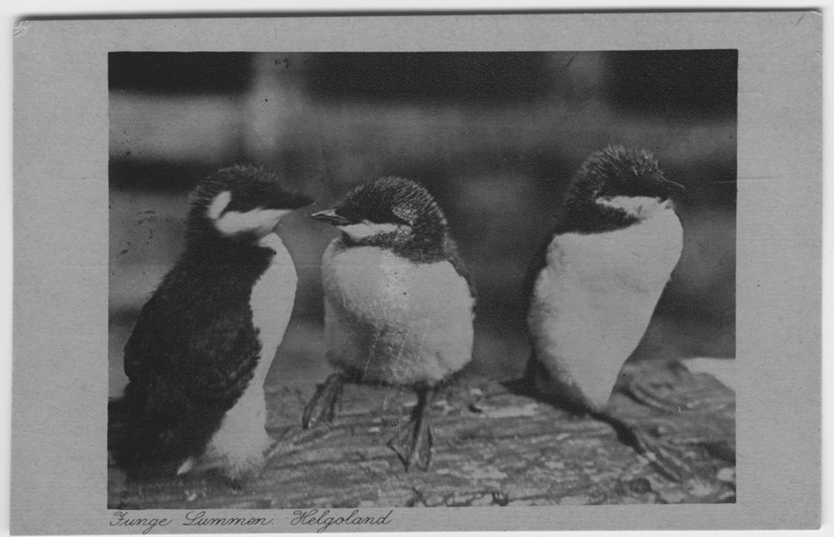 'Sillgrisslor 3 st ungar, närbild. Tysk text på fotot. :: :: Ingår i serie med fotonr. 1201-1220.'