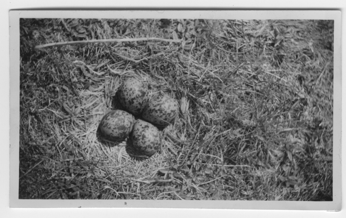 'Skärfläckans bo med 4 st nyvärpta ägg på en gräsholme. :: :: Ingår i serie med fotonr. 4500:1-172.'