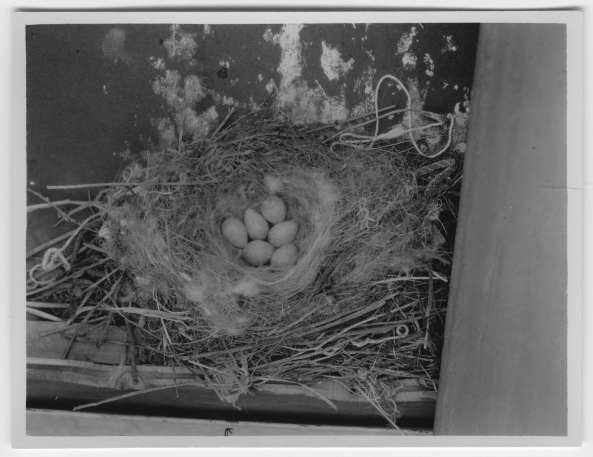 'Bo med 6 st ägg av sädesärla. Närbild. :: :: Ingår i serie med fotonr. 2116- 2160.'